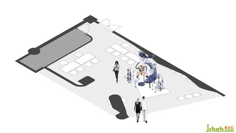 ▼雙入口視線集中于空間中心的藝術裝置,Thesight of two entrances focus on the art installation in the center of the space