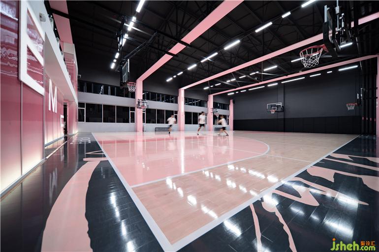 整體視覺(jué)色彩中,黑色粉色搭配帶來(lái)強(qiáng)烈視覺(jué)沖擊力,搭配中和了粉色稚嫩的感,凸顯空間的沉穩(wěn)與深邃,籃球館設(shè)計(jì)平衡了粉紅色帶來(lái)的充滿活力和快樂(lè)的感覺(jué),創(chuàng)造出極致純粹的空間觀感。