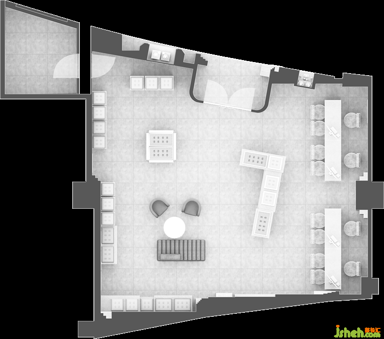 The site has an irregular outline which likes a trapezoid. Therefore, the design creates conditions for movable booths by making use of the bevel edge. At the same time, the angular space between walls becomes abstract symbols. They are naturally formed when dealing with the complexity of the space, and also become a recognizable decorative language.