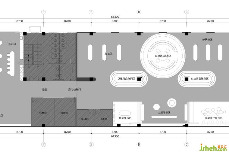展廳總共分七塊區(qū)域分別為彩妝區(qū),以往商品陳列區(qū),新品展示區(qū),高端產(chǎn)品展示區(qū),護(hù)膚品區(qū)試妝區(qū)和特展區(qū)。