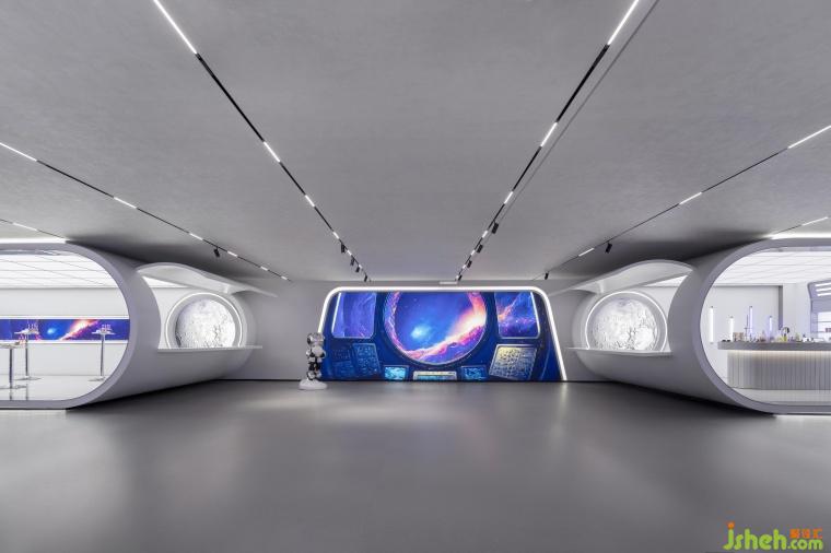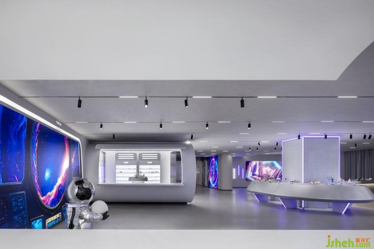 “天地玄黃,宇宙洪荒,日月盈昃,辰宿列張?!保藗儚墓胖两?,從未停止過對宇宙時空的探索,宇宙的未知性與神秘性使得它成為了人們對未來的探索路徑之一。展示著廣袤無垠宇宙的巨大顯示屏,白紫相間的線性燈帶猶如跳動著的不規(guī)則星系將旅客們從打開電梯門的一刻瞬間便拉入到未來時空的旅途當(dāng)中。在安特未來靈感艙來一場穿越星際的未來探索,融入全新的科技元素,結(jié)合化妝品展廳打造了一個沉浸式未來風(fēng)格的感官盛宴。