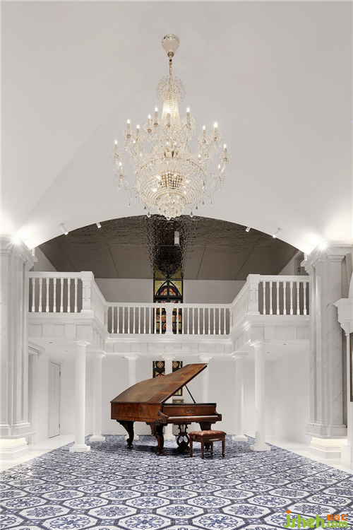 不銹鋼是相對現(xiàn)代風(fēng)格中常用的一種材質(zhì),在藝術(shù)廊中,我們用這個(gè)材質(zhì)最主要的原因是這個(gè)廊橋的下部會有一架正好生產(chǎn)于1865年的“施坦威”古董鋼琴,不銹鋼的鏡面反射效果,會讓這部鋼琴在頂部有一定投射,同時(shí)水波紋的肌理,會讓這種投射變得相對模糊,也就是廊橋上的人、廊橋下的琴、與頂部映射的影像,三者之間會相對形成空間中比較有趣味性的畫面。