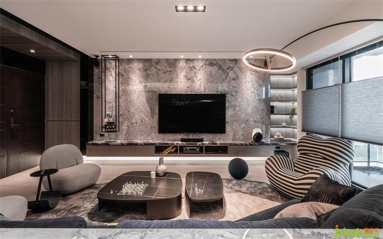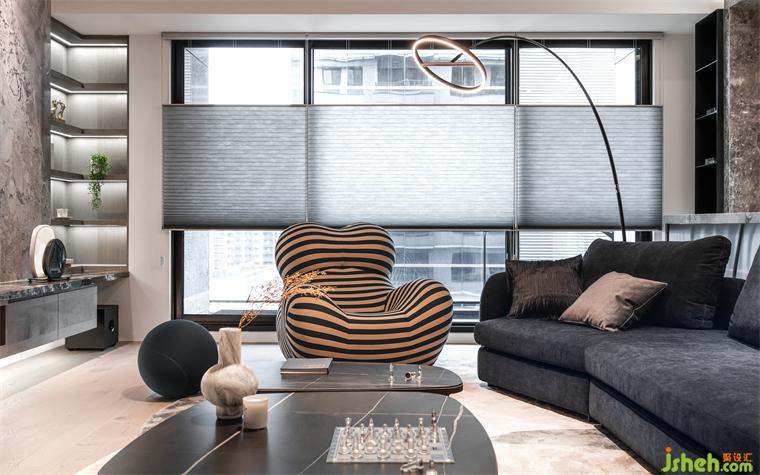 此案坐落于臺(tái)灣臺(tái)中市,復(fù)式設(shè)計(jì)將建筑環(huán)伺公園綠地的風(fēng)景轉(zhuǎn)載,成為使用材料、動(dòng)線安排、室內(nèi)設(shè)計(jì)的構(gòu)組元素。
