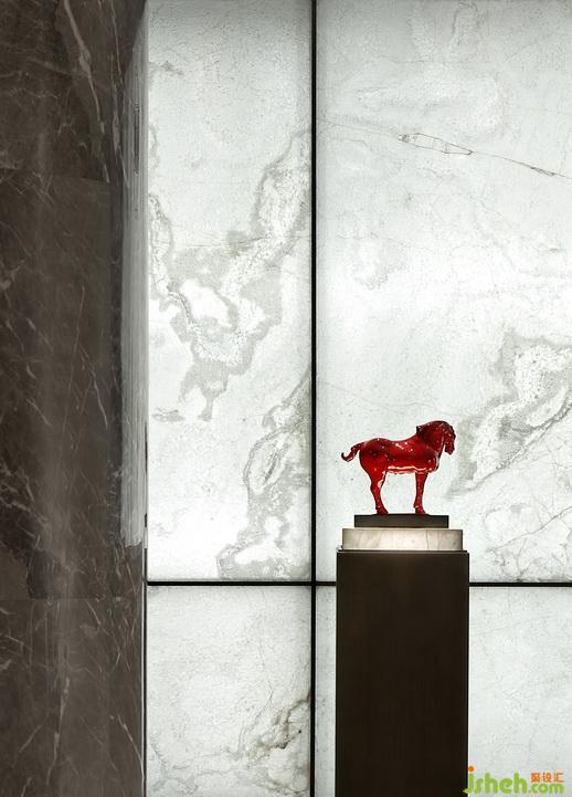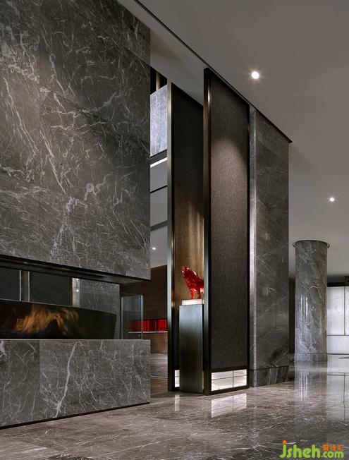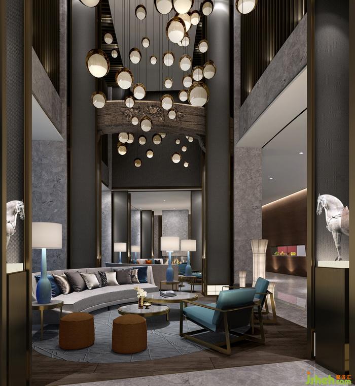 洛陽是一個十三朝的古都,可以做文章的元素也是數(shù)不勝數(shù),但也會成為負贅,所以我們從中挑選能和空間相適配的新工藝美學(xué)的方式。牡丹花的演變,傳統(tǒng)空間色彩的提取........酒店的大堂以灰色灰色石材作基調(diào),從宮廷屏風(fēng)演化而來,用現(xiàn)代構(gòu)成手法做的總接待的白色透光云石背景墻,共享中廳的豎向屏,格柵的圍合,都是大堂從傳統(tǒng)空間的借鑒里提煉出來,透出大氣挺拔的空間氣質(zhì)。而窗外草叢中的螢火燈光,從湖面飄逸到大堂中廳后四處散開的水泡燈,映著火紅的壁爐,溫馨而讓人思緒萬千。室內(nèi)設(shè)計師