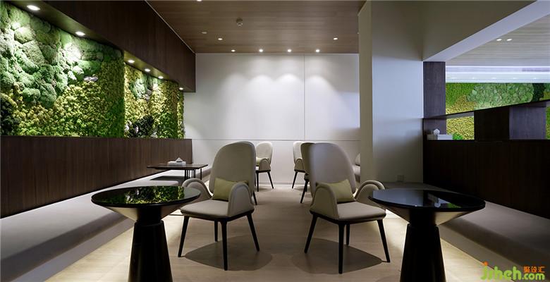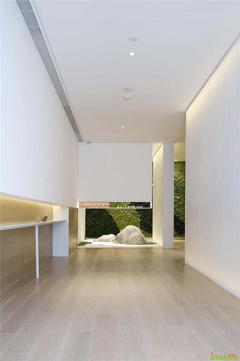 山重水復(fù)疑無路,柳暗花明又一村??此瓶臻g到了盡頭,而展廳側(cè)墻出口則又進(jìn)入了另外一個空間——vip接待室。獨(dú)立的設(shè)計相當(dāng)注重人的隱私,橫向大面的玻璃窗,計劃性地將窗外墻內(nèi)的自然園景吸納入內(nèi),讓室內(nèi)之人面外視窗最美的部分,氣氛安全隱秘而又無比舒適。
