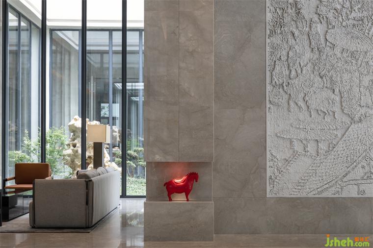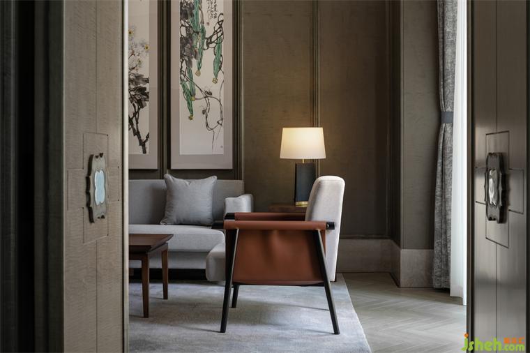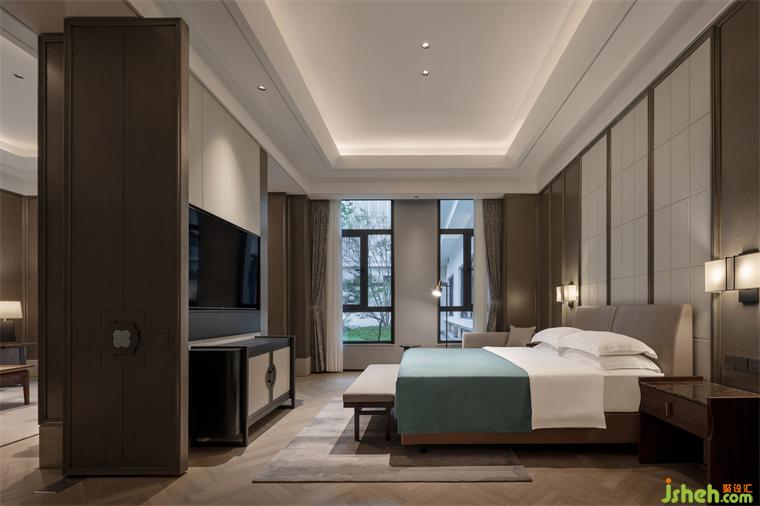 第二個(gè)體塊則是利用原有建筑空地新增的功能區(qū),用于會(huì)議接待,包含一個(gè)可容納440人的多功能廳、1個(gè)會(huì)議室、2個(gè)接待室以及帶有地域文化符號(hào)的多功能包間,整個(gè)空間莊嚴(yán)典雅,適合政務(wù)接待等多種活動(dòng)需求。設(shè)計(jì)師還在此空間內(nèi)增設(shè)了兩個(gè)小庭院,疏密得益、眼前有景,賓館設(shè)計(jì)從而打破大體量空間所帶來(lái)的沉悶感。兩個(gè)體塊因四個(gè)庭院起承轉(zhuǎn)合形成回廊得以串聯(lián),實(shí)現(xiàn)了內(nèi)部空間的有序性。