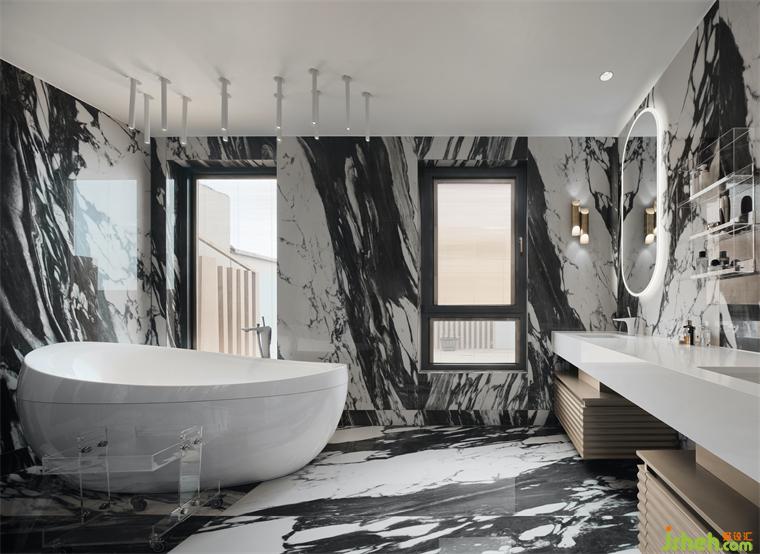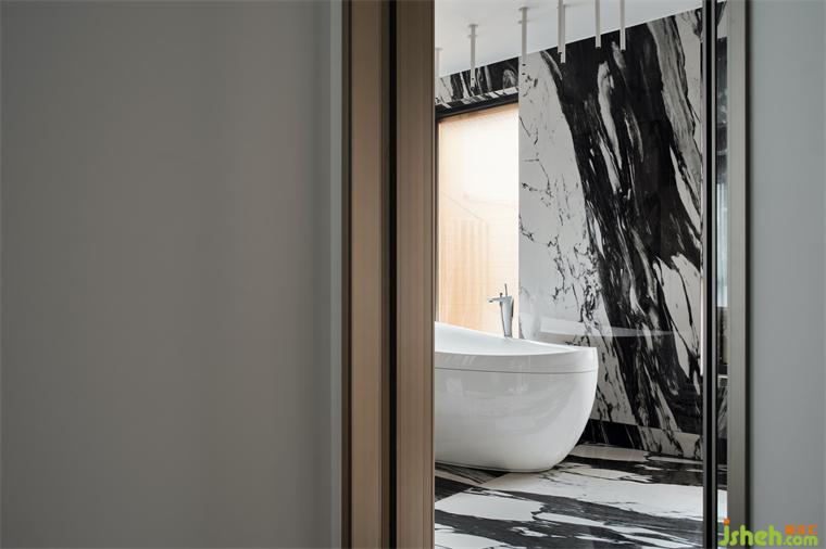 獨(dú)立式浴缸占據(jù)主衛(wèi)的C位,極簡(jiǎn)造型,超凡脫俗,既實(shí)現(xiàn)了泡澡自由,也彰顯出主人精致的生活態(tài)度。