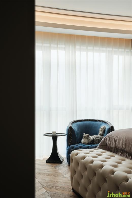 如安藤忠雄所言,奢華的家要有安靜的感覺(jué)。主臥以低飽和度色彩為主,高級(jí)感拉滿(mǎn),又有親和力。