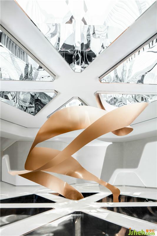 飄帶如長卷,將外部的自然山水引入展廳內(nèi)部,結(jié)合中國傳統(tǒng)的山水畫的意境。