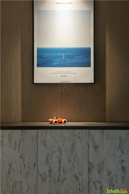干區(qū)與沙發(fā)背景連為一體“借”客廳的一縷光線(xiàn)使整個(gè)空間更顯得通透,從干區(qū)往客廳看增加了美感,在不同光線(xiàn)的作用下,自然細(xì)密的肌理顯露出不同層次的色彩,方寸間勾勒出碎碎念與小歡喜,層層鋪開(kāi)溫馨的生活碎片。