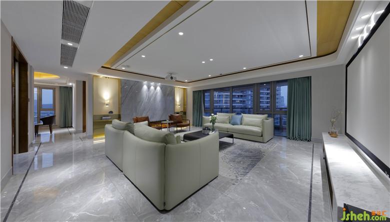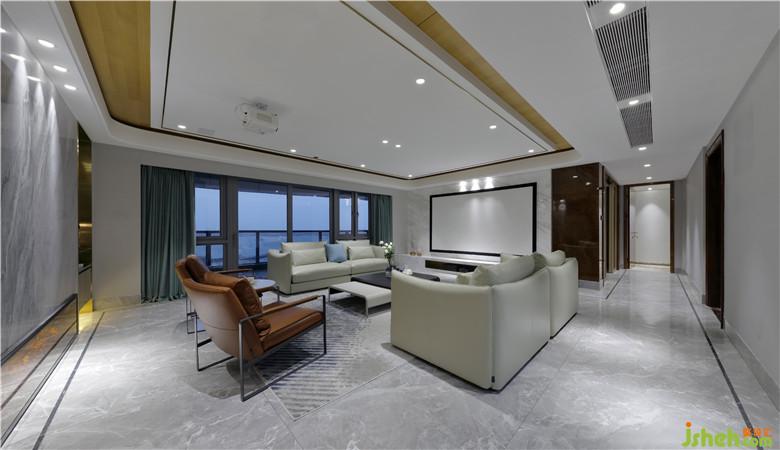 把環(huán)境帶進生活,把生活帶進環(huán)境。寬達6米的落地窗將室外美景展露無遺,盡入眼底的是一幅令人心曠神怡的海景畫卷。大尺度的落地窗開合有度,美好的陽光照進室內,地面上蕩漾微光,沙發(fā)的柔軟,金屬的華貴,水晶的璀璨、香氛的甜美、音樂的共鳴……空間不僅是視覺的,更是人的五感可以感受和觸摸的。