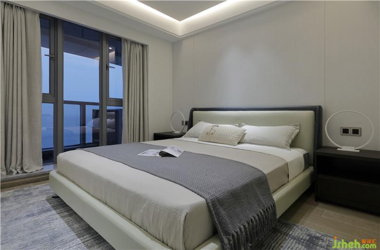 窗外自然灑落的陽光提供主臥室溫暖的空間氛圍,遙望落地窗開闊的視野,迎面而來的是那一束晨曦之光,灑落一地暖意……