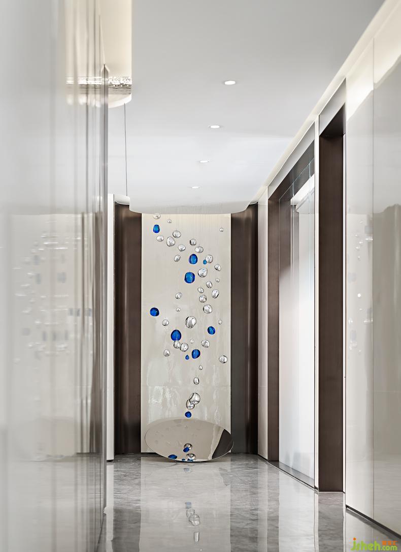 過道作為不同功能區(qū)的中轉(zhuǎn)點(diǎn),自出獨(dú)特的格調(diào)。走廊盡頭直觸圓形裝置,好像《桃花源記》中所描繪的“初極狹”,而后“豁然開朗”,令人沉浸于藝術(shù)與生活共融的美學(xué)場景,向往自在陶然的生活