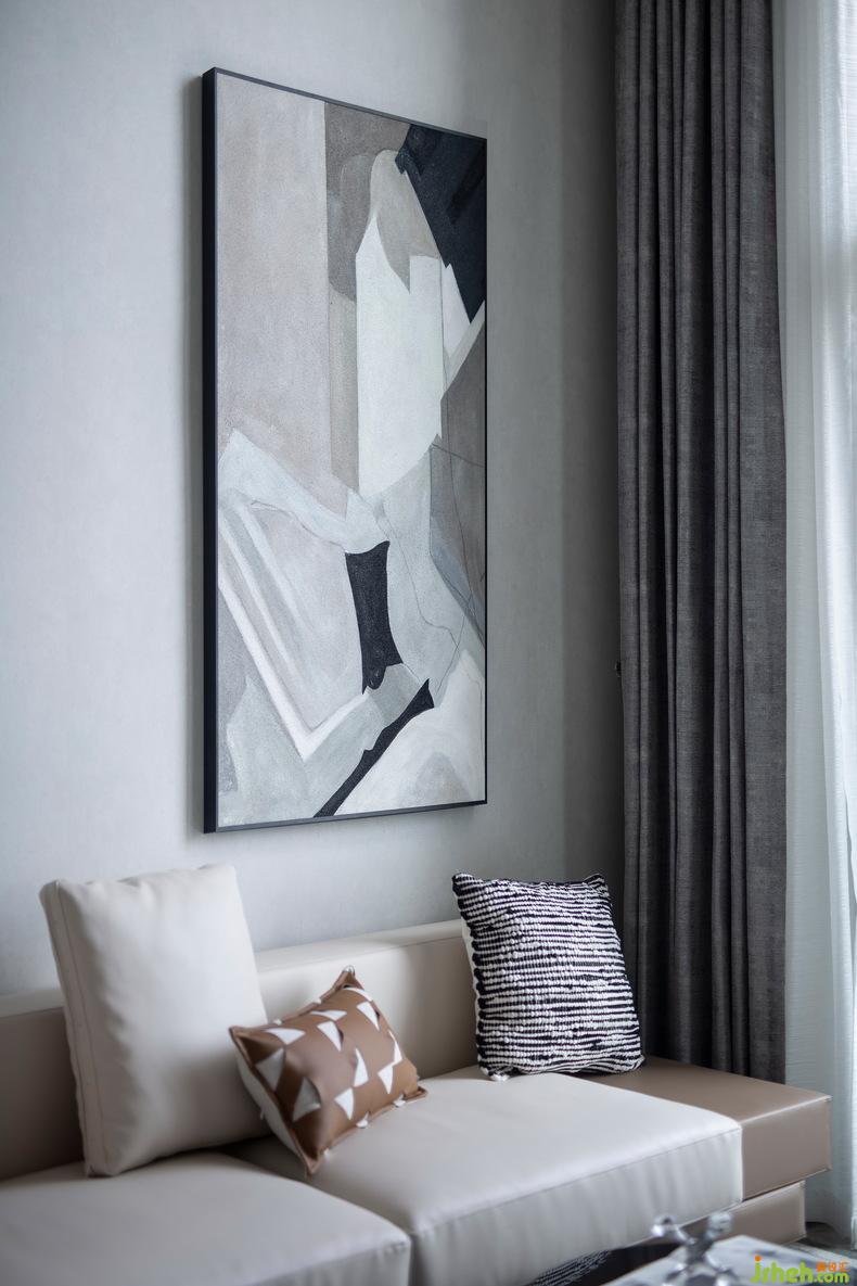 大面積的米色墻體,就愿意只讓一副現(xiàn)代掛畫成為它的焦點;