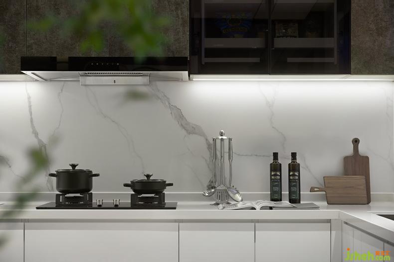 步入餐廳,設(shè)計(jì)師將原本餐廚獨(dú)立的布局打通并融為一體,擴(kuò)大了視覺(jué)空間,樣板房設(shè)計(jì)便于家人間互動(dòng),增進(jìn)彼此交流與溝通。功能上區(qū)分中餐料理區(qū)與西餐烘焙區(qū),讓美食擁有多種誕生形式,滿足家人的味蕾選擇