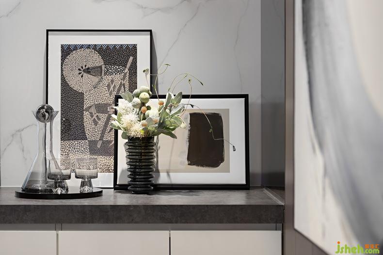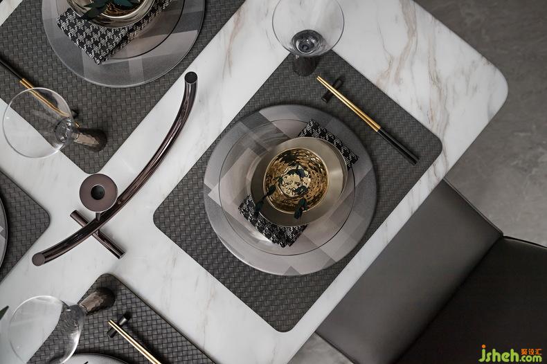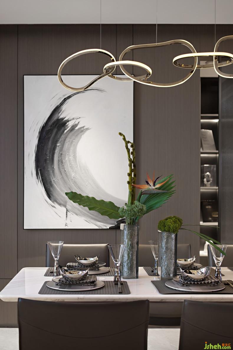用餐區(qū)小到餐具的擺置搭配,大至掛畫(huà)的考究,都彰顯著高雅輕奢的氣質(zhì)。華麗的金屬吊燈如躍動(dòng)的音符,附著一家人齊聚進(jìn)餐的歡聲笑語(yǔ)、杯盞晃動(dòng)、光影交錯(cuò)著漸變著,一曲愛(ài)與美食的家庭樂(lè)章就這樣欣然奏響,綿逸柔遠(yuǎn)