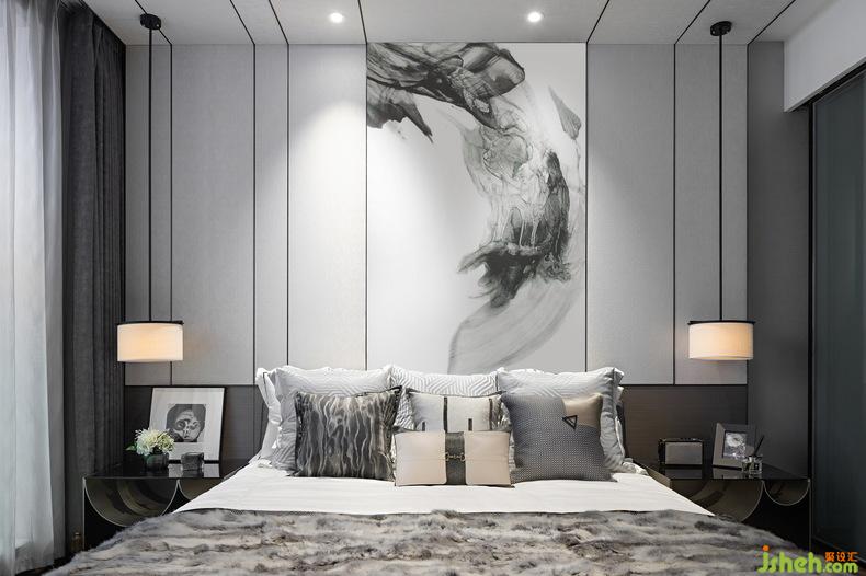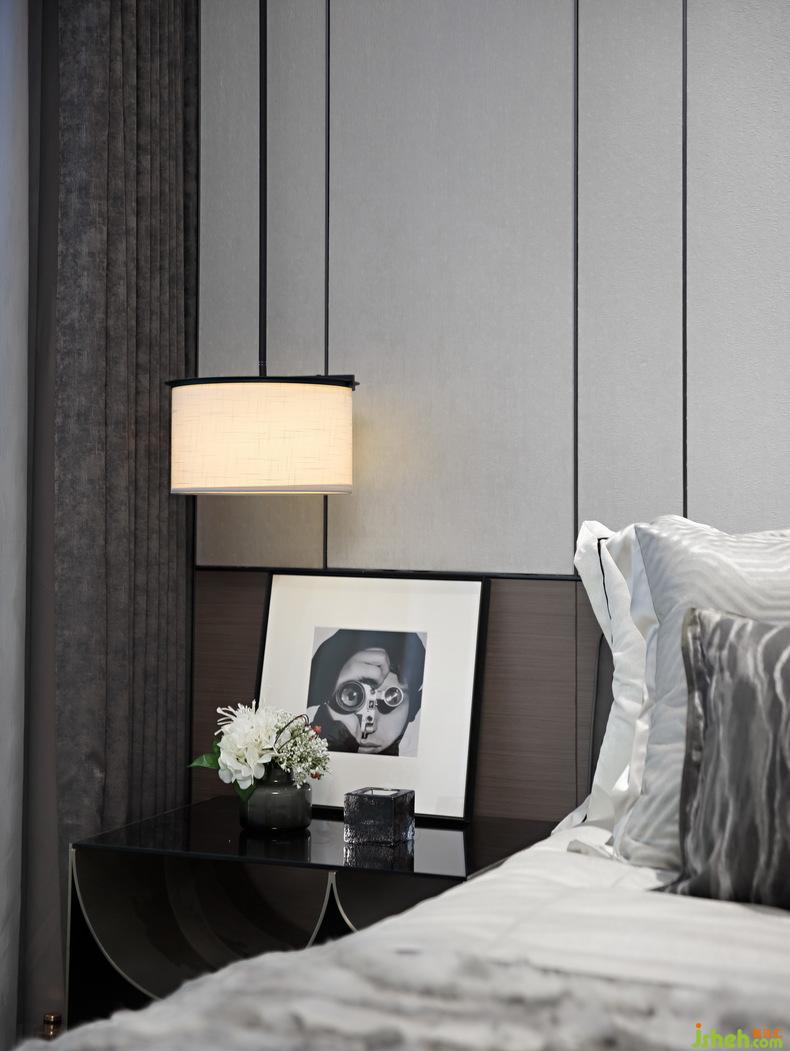 告別傳統(tǒng)式設(shè)計(jì),主衛(wèi)以一面清透材質(zhì)的玻璃,形成與主臥邊界的消解樣板房設(shè)計(jì)。
