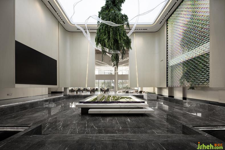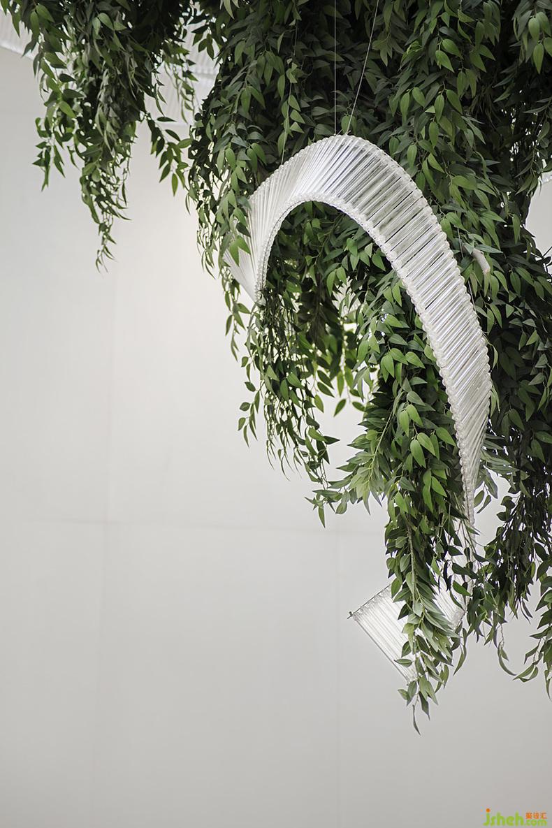 從天垂降的藝術(shù)裝置,以水為脈,以樹為神,綴以古今之脈,籠罩著在底下居住生活的后代子孫,享受生活的溫馨和能量。以“水”為脈絡(luò)貫穿始終,動(dòng)靜相結(jié)合,潤物細(xì)無聲。于一水一木中發(fā)現(xiàn)內(nèi)心,營造一個(gè)“寄情于山水之間”的現(xiàn)代生活方式。
