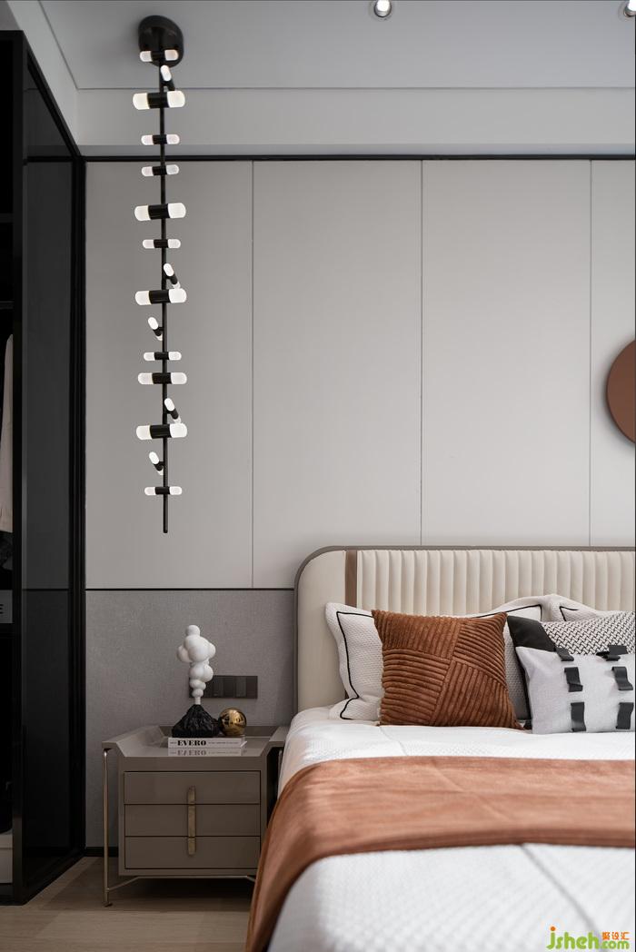 在空間整體軟裝配飾上,樣板間設(shè)計師以調(diào)性柔美、色彩素雅的干花藝作為主要裝飾元素,構(gòu)建沉靜、柔和、自然的調(diào)性,使得整個空間充滿溫潤的詩意,仿佛置身于“樹樹皆秋色,山山唯落暉”的戶外秋色之中。
