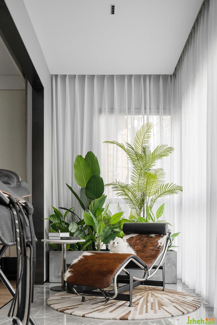 主臥陽臺大面積落地玻璃窗,綠植在一旁悄然生長,明朗安靜的角落里陽光充盈,散發(fā)出自然的活力與生機(jī)。一把躺椅,一杯花茶,一本小書,在休閑的日子里感受午后愜意的陽光,隨著時間、氣候的變化感知窗外四季的光景,捕捉每一刻的小幸福。