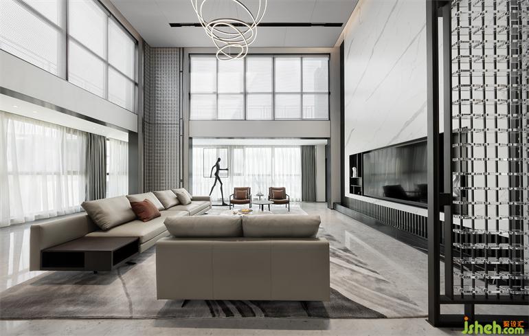 客廳是社交的中心,傳達了契合主人疏朗的個性。格局大氣自帶溫潤感,府邸設(shè)計留白與平靜疏淡的布局,僅于對角置入水晶屏風(fēng),整體讓渡于獲得內(nèi)心秩序與安寧的光。如同一位詩人,懂得欣賞黎明的來臨。
