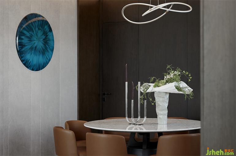 餐廳注重圓融的就餐儀式感,府邸設(shè)計以優(yōu)雅禮儀呈現(xiàn)男女主人待客的關(guān)照心境,這與主人文雅的氣質(zhì)不謀而合。