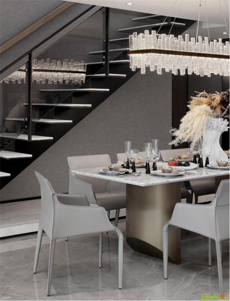 餐廳的設(shè)計(jì)透過消解、打碎與重組等方式,樣板房設(shè)計(jì)去構(gòu)建空間的感染力。你會(huì)看到,這里就是一個(gè)過渡與連接的空間。它與客廳和茶室遙相呼應(yīng),樓梯的存在又與二層臥室界定了無形的領(lǐng)域關(guān)系。