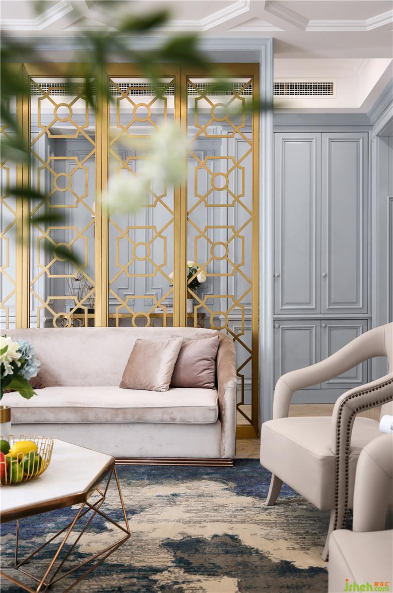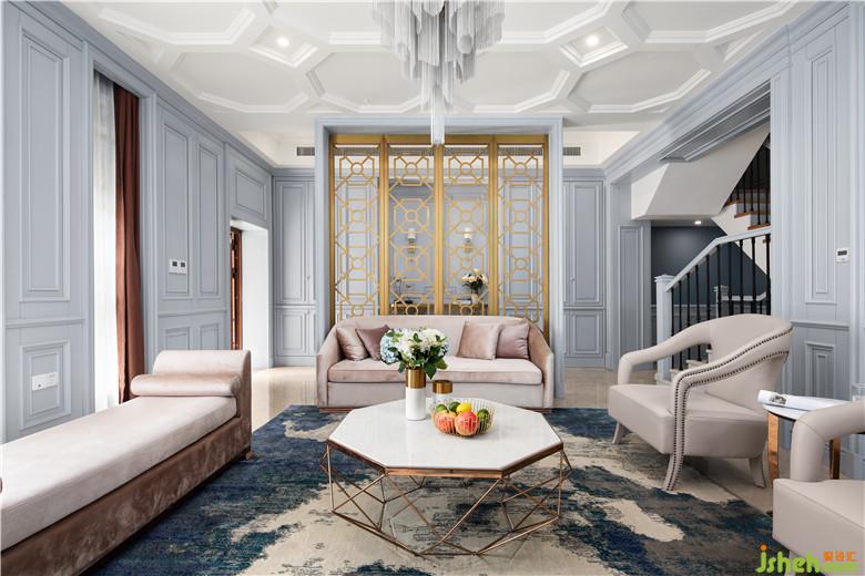 一樓借助原始結(jié)構(gòu)存在的地勢(shì)高差,躍層設(shè)計(jì),室內(nèi)設(shè)計(jì)師使得整個(gè)空間層次分明。進(jìn)門處金屬屏風(fēng)的應(yīng)用,讓個(gè)性化元素跳躍其中,每一個(gè)回轉(zhuǎn)皆是一個(gè)驚喜。造型獨(dú)特的天花,別致的流蘇吊燈,素雅的絨布沙發(fā),配以大理石茶幾,打造溫馨舒適的氛圍。