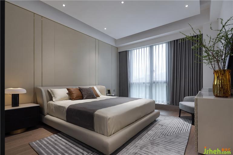 一處美好的居所就像一幕精心排演的話劇,訴說著主人對生活的熱愛以及對家人的關(guān)照。在這個精神與身體歸屬的空間里,呈現(xiàn)生活的本質(zhì)。主臥以簡約、雅致為基調(diào),大平層裝修設(shè)計在L型布局的套房設(shè)計中嵌入步入式衣柜,有效利用空間。半圍合式弧形床頭,搭配白色蘑菇燈,點(diǎn)亮溫柔的夜色,為主人的安眠營造一份靜謐和安全感。