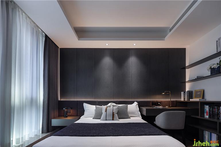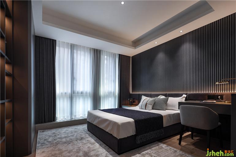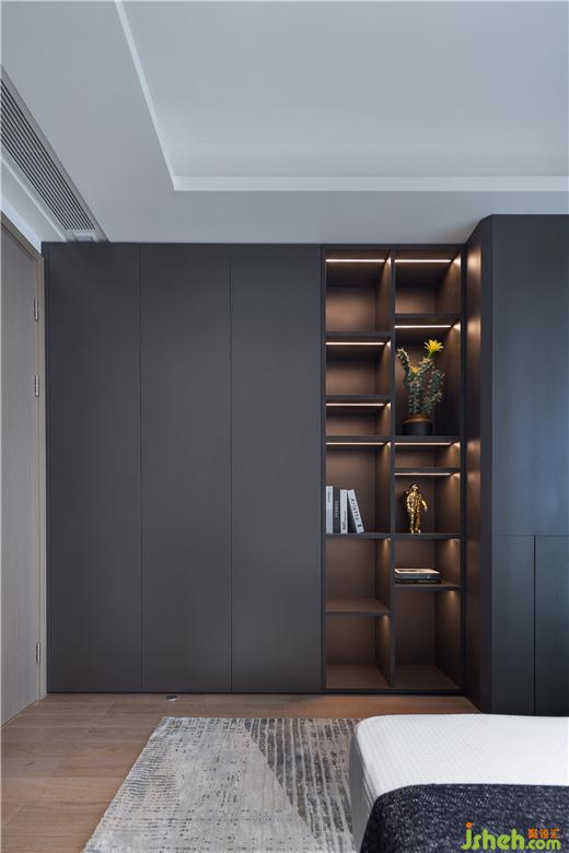 兒童房將空間面積合理利用,根據使用者的身份設置為酷黑風格。大平層裝修設計基于實用功效的考量,打造集衣柜、書柜、學習桌、懸浮柜等多元功能的一體式柜體,提供了充沛的收納空間。多層次光源組合柔和了居室氛圍,為孩子打造一方成長的天地,每天的起居都充滿活力。