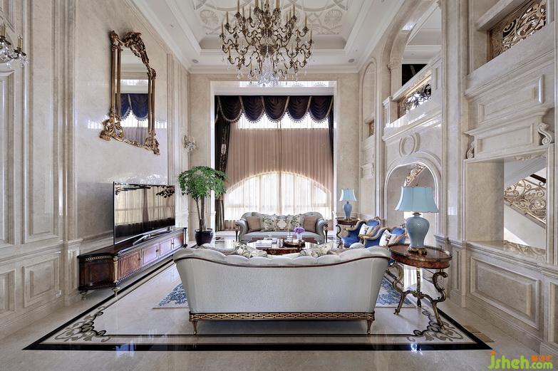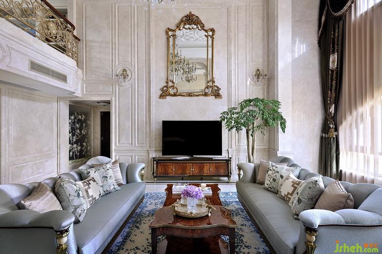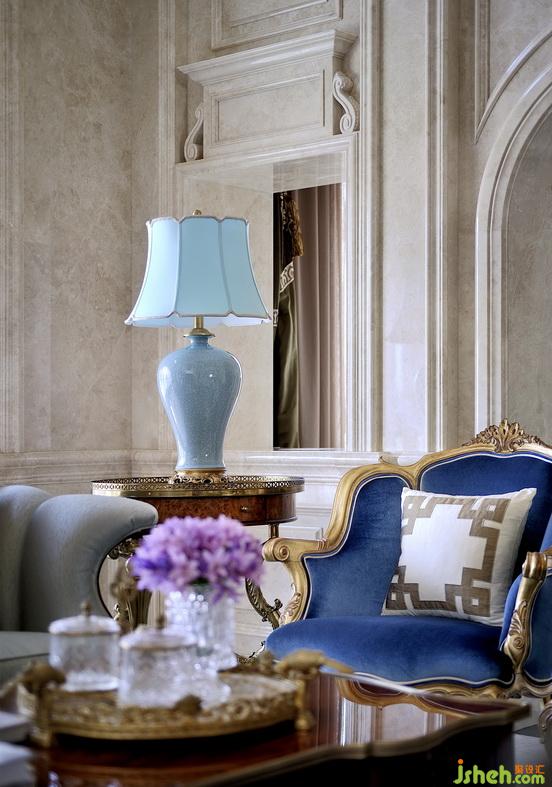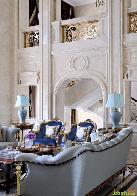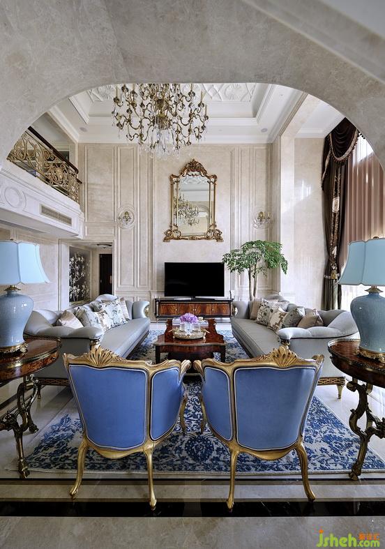 設(shè)計(jì)師最終選擇藉由新古典主義的尊貴大氣與灰藍(lán)色系的溫柔雅致打造業(yè)主想要達(dá)到的高級感。別墅裝修設(shè)計(jì)