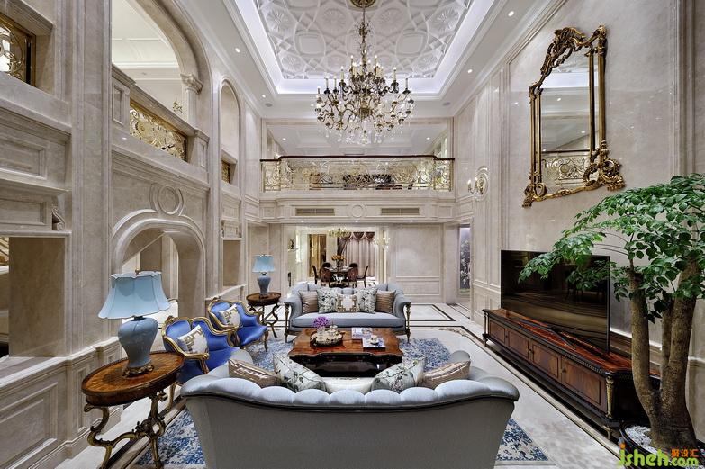 古典的玫瑰金材質(zhì)在雕欄、水晶吊燈、銅鏡、家具上的穿插點綴,像星光在天鵝絨般的夜空耀眼璀璨,將古典歐洲的風雅體現(xiàn)得淋漓盡致,平添了幾分貴族氣息。別墅裝修設計