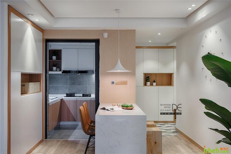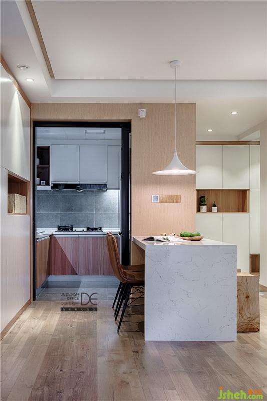 餐桌室內(nèi)設(shè)計(jì)師采用石材定制,這樣的調(diào)整實(shí)現(xiàn)了業(yè)主想要的島臺(tái),且彌補(bǔ)了廚房臺(tái)面不夠的問(wèn)題。增設(shè)餐廳儲(chǔ)物柜,超大容量,干貨、零食、餐具等物品統(tǒng)統(tǒng)裝下,給女神一個(gè)干凈整潔的餐廳。