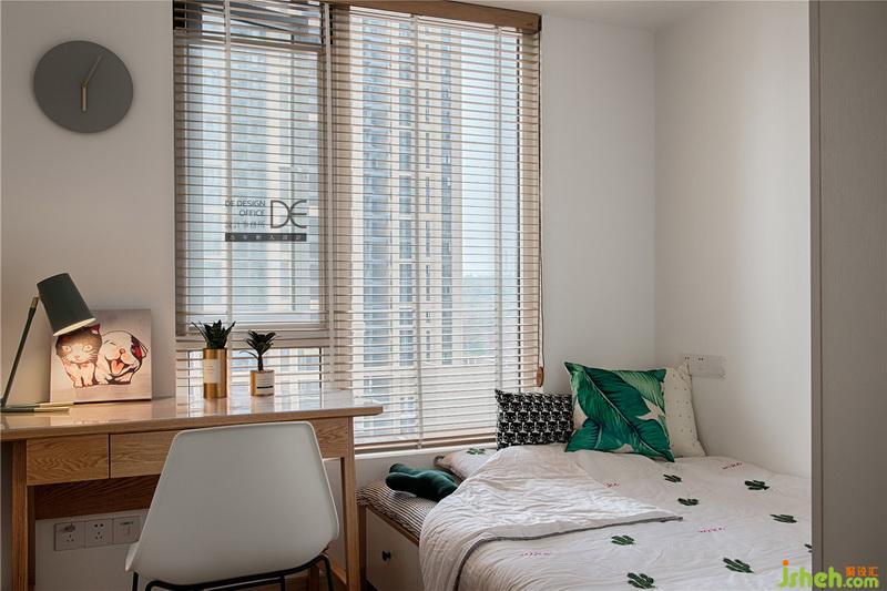 臥室墻面使用仿砂巖墻紙,為了營(yíng)造質(zhì)樸干凈的空間感,避免燈光直射眼睛,室內(nèi)設(shè)計(jì)師特別采用了環(huán)境光的處理方式,加上頂面的漫反射和墻面的花燈設(shè)計(jì),讓整個(gè)空間溫暖又舒適。