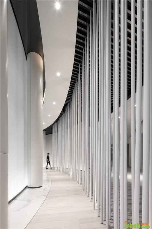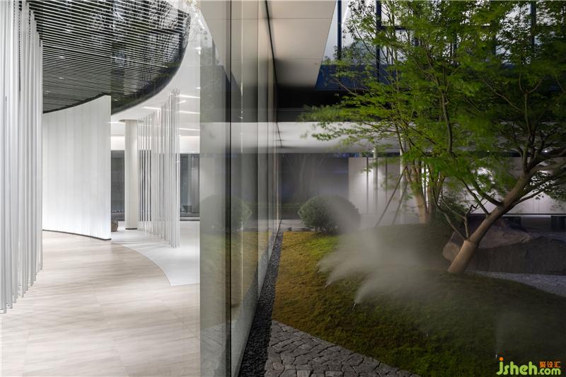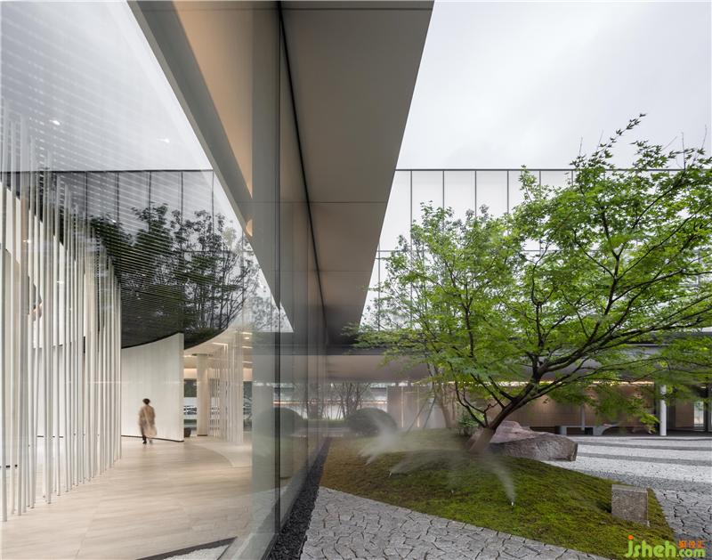 迂回動線是為實現(xiàn)‘漫步’的手法,配合干凈利落的形態(tài),感應(yīng)江南婉約、靈氣與從容。