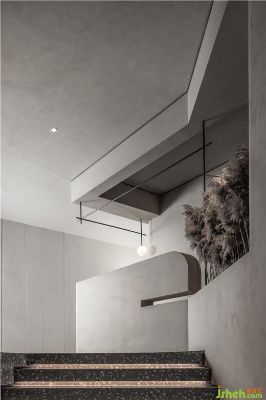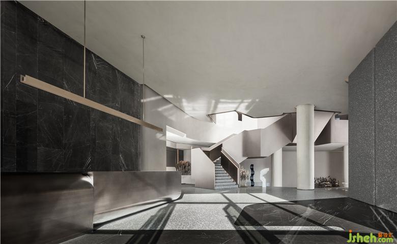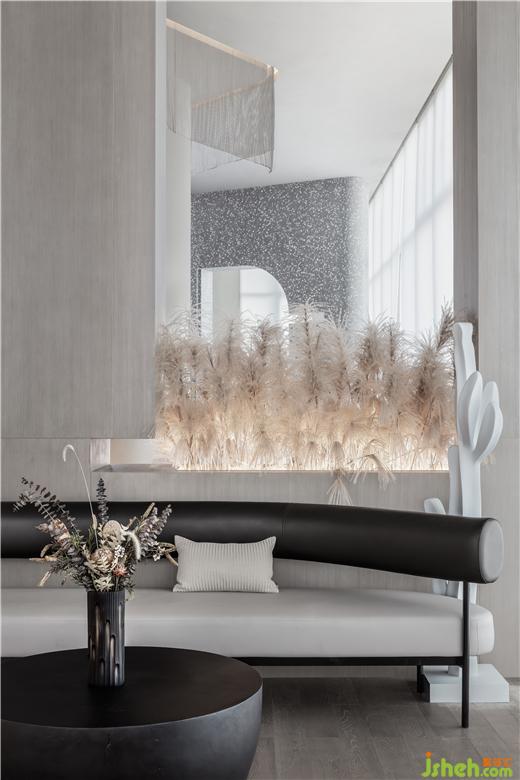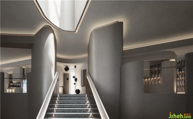 售樓處設(shè)計(jì)在平面構(gòu)成的語言上,提煉出峽谷和溪流形態(tài)為建構(gòu)載體,通過仿生學(xué)設(shè)計(jì)的抽象提純。運(yùn)用西方極簡繪畫手法將“山”的語言改編,用以轉(zhuǎn)化接待臺(tái)的輪廓,當(dāng)幾何形態(tài)滿載于多維空間時(shí),便豐富了建筑的內(nèi)在層次,實(shí)現(xiàn)了室內(nèi)節(jié)奏、韻律、情感的統(tǒng)一。大自然賦予萬物的形體、累積而來的生活方式,皆為建筑帶來了不同程度的豐富,在人與自然之間,掙脫了界定,傳遞更多對(duì)于未來的想象。