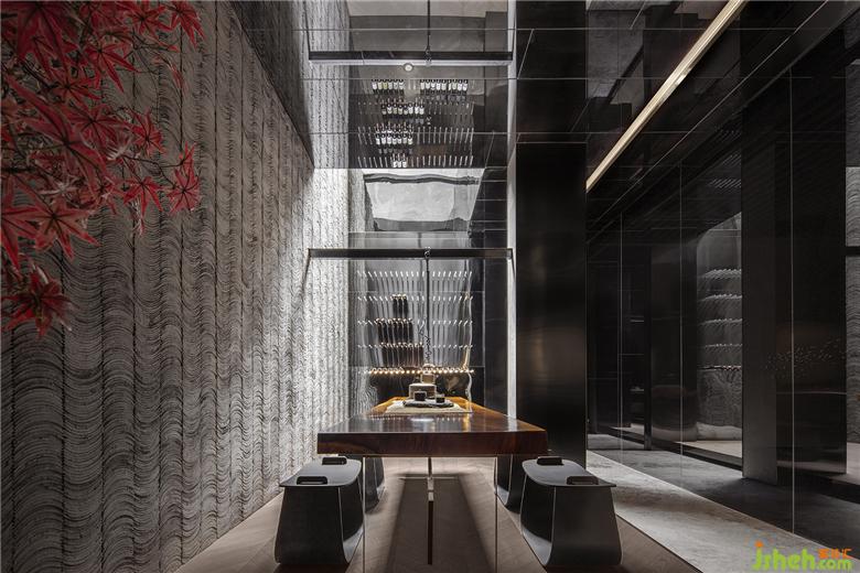 一層公共空間紅褐色的石材運(yùn)用,搭配溫潤(rùn)的木飾面,奢華中不失人文。