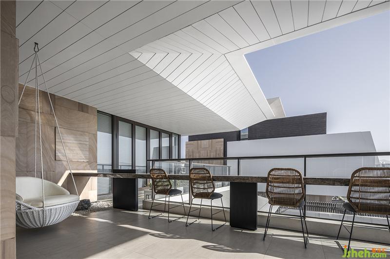 在量體錯(cuò)落的吧臺(tái)與餐桌,高舉酒杯暢飲,酒酣耳熱之際跨出落地玻璃。