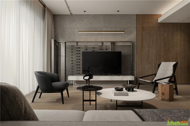 電視墻與底墻以鐵件作為裝飾,運(yùn)用比例形成編織感與層次的展現(xiàn)。