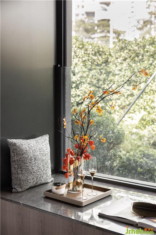凸窗借景于室現(xiàn)代內(nèi)斂的空間手法,俐落卻不失多變換的風(fēng)景及生活軌跡,客廳大面積的開窗,深圳樣板房設(shè)計(jì)除了造型層面之外,更賦予空間產(chǎn)生自然的氣息,依著景致對(duì)坐,公區(qū)的氣場(chǎng)自然形成。