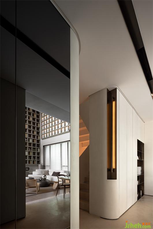 透過量體的虛實及內(nèi)崁手法表現(xiàn)柜體收納