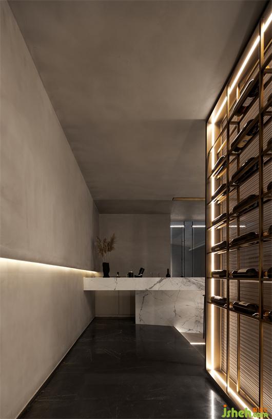 光線可以賦予空間無限想象,采光讓陽光肆意地在室內(nèi)自由跳躍。開放的客餐廳格局中,藝術(shù)格調(diào)的微水泥鋪展開來,不同灰色的明度關(guān)系與冷暖關(guān)系被精心安排。