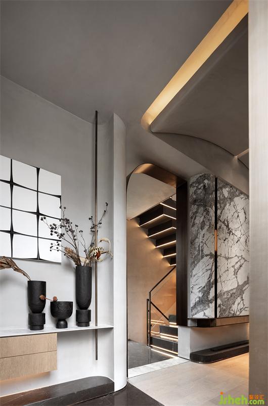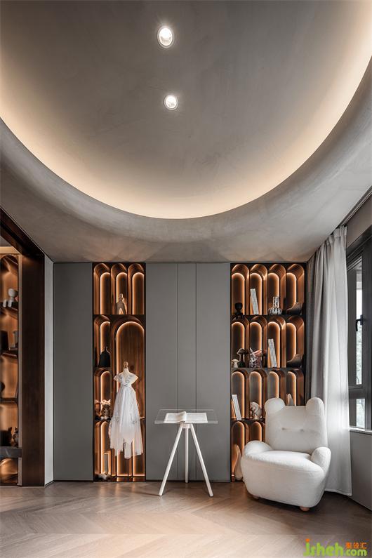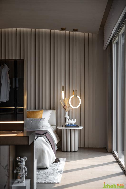 潔凈的天花與米灰色墻面、極具腔調(diào)的灰色皮革背景、舒適溫暖的布藝床品,在簡約的空間中相得益彰,構(gòu)建了一個(gè)遠(yuǎn)離都市喧囂的詩意空間。