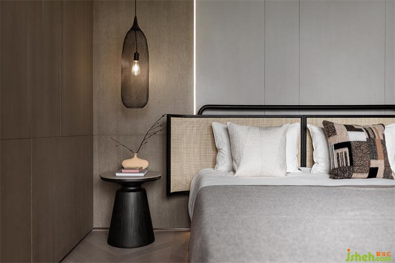 長輩房房的臥室保持簡約的設計風格,經(jīng)久耐看,局部木制墻面與整體空間相呼應。