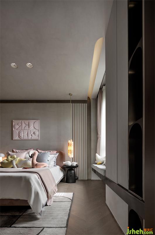 兒童房延續(xù)空間的整體風格,平淡簡凈,樣板間設計以金屬打造的童趣展架,點出空間氣質(zhì),打造寧靜雅致的休憩空間體驗,令人于其中徹底放松身心,感受生活給予的柔和力量。
