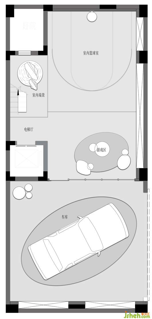 挑高的地下室,以灰色基調(diào)為伊始,結合線條與金屬質(zhì)感,為空間注入精致與高級感。