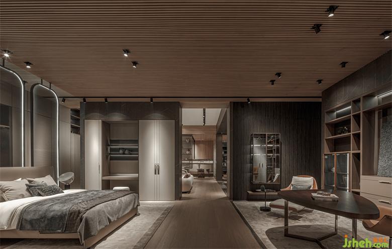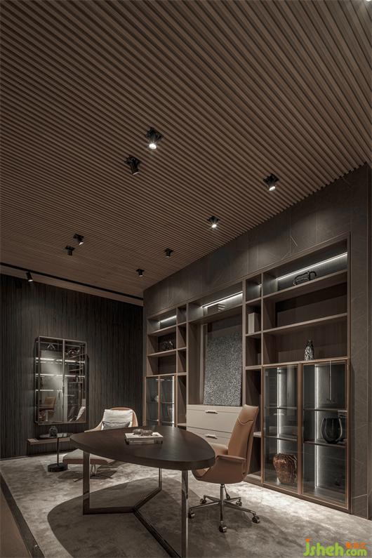 大面積運用格柵天花與金屬材質(zhì)搭配