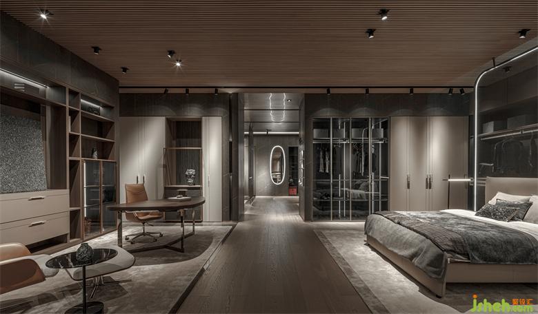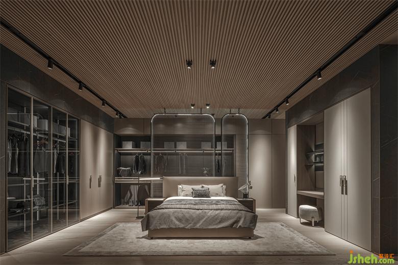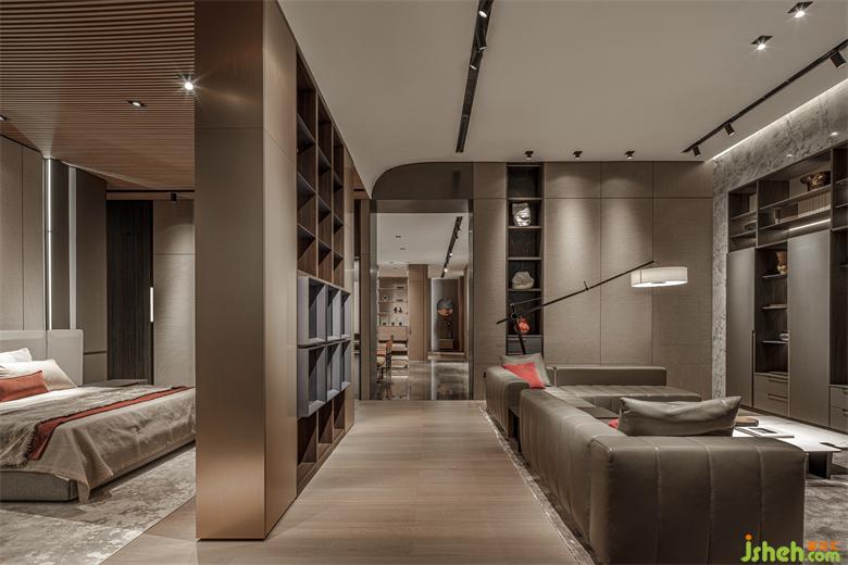 家居展廳設(shè)計(jì)以床作位為動(dòng)現(xiàn)中心的起點(diǎn),聚焦且向四周發(fā)散的空間機(jī)能
