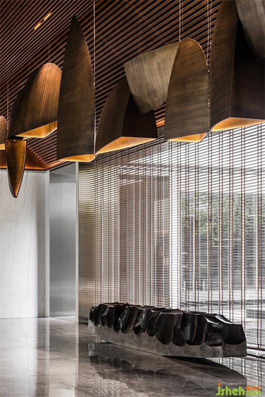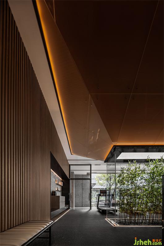 本次會(huì)所設(shè)計(jì)主軸概念為錯(cuò)動(dòng)的盒子,在井字型規(guī)律的九宮格空間中以機(jī)能劃分不同區(qū)塊,然后錯(cuò)置、延伸,創(chuàng)造出漂浮在水面上的盒子,打破規(guī)律的室內(nèi)外界線,讓水面更貼近室內(nèi)空間,模糊邊界的定義.