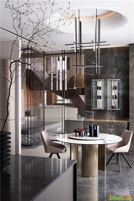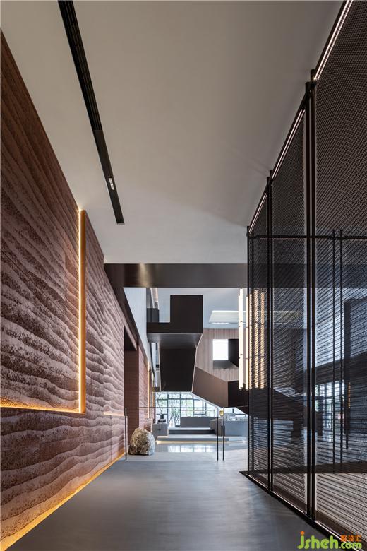 探討生活真正的需求,希望淬煉出最精簡(jiǎn)的空間本質(zhì),一處一景,讓生活的空間充滿(mǎn)更多的可能性。顧家展廳設(shè)計(jì)師在中空區(qū)域運(yùn)用仿生學(xué)設(shè)計(jì)的抽象提純,運(yùn)用階梯漫步于空中,讓光影交錯(cuò)的豐富變化將建筑形態(tài)內(nèi)置到大廳。